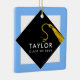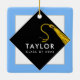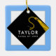 Regalo de trinquete de grano con tapa de graduación negra y tassel de oro sobre fondo azul claro. Edite texto para añadir el nombre del graduado y el año de clase superior.