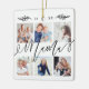 Envía un hermoso regalo personalizado a tu abuela (mamá) que ella apreciará para siempre. Ornamento especial de collage de fotos de nietos personalizados para mostrar sus propias fotos y recuerdos familiares especiales. Nuestro diseño cuenta con un sencillo diseño de cuadrícula de 6 fotos con "Mama" diseñado en un hermoso estilo de escritura negra manuscrita. Personalizar con nombres de nietos en la parte posterior del adorno.