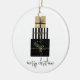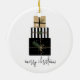 Ornamento navideño navideño con las palabras "Feliz Navidad" y un montón de regalos de estilo mínimo. Personalice el texto personalizado anterior. También puede cambiar el color de fondo. Puede encontrar elementos de coordinación adicionales en nuestra colección "A Modern Illustrated Holiday".