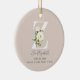 Un hermoso bebé, estadísticas de natalidad Navidades de registro de nacimientos foto diseño de adornos de monograma. En la parte delantera del adorno se encuentra la letra Z, decorada con rosas de color de agua blanco sobre un fondo rosa rubor, y el nombre del bebé en tipografía con letras a mano en gris suave, seguida de estadísticas de nacimiento del bebé. En la parte trasera de la tarjeta aparece la foto del bebé. Diseño exclusivo para, y derechos de autor por: Anastasia Surridge Diseños: Personalizados de regalos fotográficos, todos los derechos reservados.