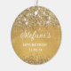 Moderno purpurina de oro brillante de chicas en el borde superior e inferior, sobre un falso Relieve metalizado oscuro de estilo metalizado de oro suave. Personalizar los estilos de letra para crear tu propio ornamento de círculo de 65 años para tu mejor amiga o para su celebración especial. Este ornamento de cumpleaños de hito para ella y la caligrafía clásica elegante emparejada con un tipo de letra serif de todos los mayúsculas será perfecto para su celebración y eventos.