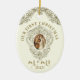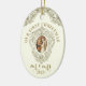 Imaginen un elegante adorno oval de Navidad adornado con una imagen intemporal y tradicional de la época católica. Esta exquisita pieza captura el momento sagrado del matrimonio de la Santísima Virgen María y San José, envuelto en un marco lustoso de la cosecha dorada. El delicado diseño evoca una sensación de reverencia y gracia, lo que lo convierte en una bella adición a cualquier árbol de Navidad. Gire el adorno y al revés, la magia continúa. Se despliega un bello versículo de las Escrituras —la Canción de Salomón 3:4— añadiendo un toque poético al diseño del adorno. Esta escritura, una celebración del amor y la devoción, eleva el adorno a un nivel de belleza espiritual. El nombre del recién casado también está en la parte trasera, lo que lo hace más especial. Este keepsake personalizado se convierte en un símbolo de la unión de la pareja, ofreciendo una mezcla de elegancia, tradición y significado religioso para honrar las celebraciones de sus Navidades.