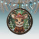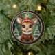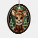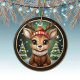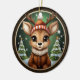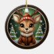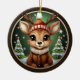 Este ornamento de renos presenta un marco redondo, rústico, dorado y marrón que le da un aspecto elegante. Dentro del adorno, se despliega una escena de Navidades con un animal adorable, ciervo bebé con cuerdas en un estilo gráfico personalizado, con un abrigo marrón con pieles alrededor del cuello, un gorra marrón con guarnecido de rayas blancas y rojas, parado en primer plano. El fondo incluye elementos suaves, como árboles de navidad, copos de nieve y paisajes de nieve de invierno, completando el encanto de la temporada de vacaciones de esta encantadora decoración única. La misma imagen está en la parte delantera y trasera. Esto garantiza que, independientemente de cómo se torne el adorno, siempre se ve festivo y completo.