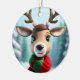 Escena de invierno con un lindo reno vistiendo una bufanda.