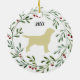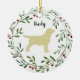 Adorno Navideño de Labrador Amarillo en un bonito diseño de corona. Personalice con nombre y año. DERECHOS DE AUTOR © 2020 Judy Burrows, Black Dog Art - Todos los Derechos Reservados