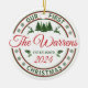 Personalice este lindo retro "Nuestra primera Navidad" casada [El apellido} que se estableció [año - 2024] alrededor de un adorno de cerámica - hace un perfecto regalo de boda de keepsake personalizado para celebrar la primera Navidad de los recién casados como Sr. y Sra.!