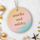 Conmemore su día especial con este ornamento Boda de Vibes de Verano Retro, con un suave gradiente pastel que capta la esencia de una tranquila puesta de sol en la playa. Personalízalo con tus nombres, fecha de boda y una preciada foto para crear un conservador único que celebre tu amor. La tipografía de inspiración retro y la suave mezcla de colores hacen de este adorno una adición elegante y significativa a su decoración de vacaciones o un regalo para los seres queridos. Perfecto para recordar su día de boda con un toque nostálgico.