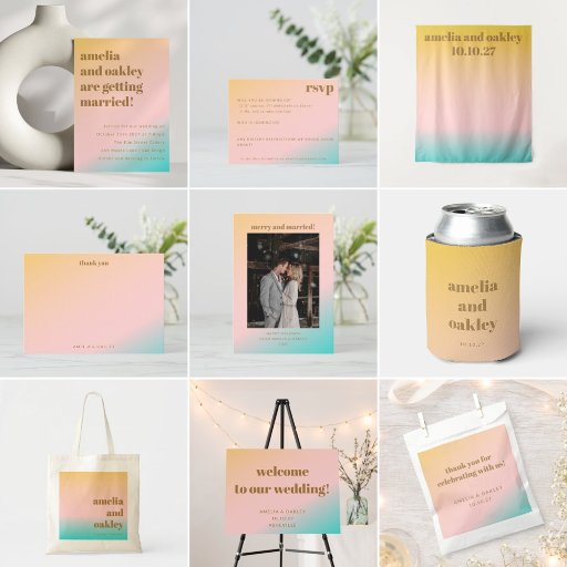 Retro Beach Vibes Pastel Gradient WeddingDiseñado por Opal Ellery