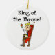Un diseño humorístico de figuras de palos con un rey real en una bata roja con guantera sentada en un trono y texto que dice "¡Rey del trono!". ¡La gente podría interpretar ese trono como un retrete! ¡Genial para las gafas y las sonrisas!