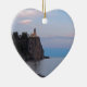 Faro partido de la roca en el lago Superior en Minnesota. Para puesta del sol esperada para intentar y para coger los rosas y púrpuras que muestran generalmente sobre el lago.