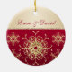 Recuerde su día especial con este hermoso purpurina rojo y dorado falso (IMPRESIONADO) copos de nieve redondeados de cerámica en forma de primera Navidad junto conservando el adorno de sake que se puede personalizar con los nombres de la novia y el novio, y el año. Puedes personalizar el texto para decir lo que quieras. ****Asegúrese de que el texto se encuentra donde lo desee, ya que se imprimirá tal como aparece en su monitor. Zazzle NO corregirá nada. También coincide con la invitación a la boda que se muestra a continuación. Si desea una forma diferente, o si necesita ayuda, envíe un correo electrónico a niteowlstudio@gmail.com.
