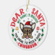 El lindo ornamento de cerámica de Navidades blancos de la ronda de pastores australianos con un nombre de perro personalizable, y con la frase "Querido Santa, sabes que he sido un buen australiano". La parte trasera del adorno tiene un paisaje de invierno nevado, pero puedes reemplazarlo con una foto de tu perro (o cualquier otra foto tuya que consideres apropiada...). Idea de regalo perfecta para cualquier madre, padre, amante y dueño de perro pastor australiano en todo el mundo.