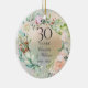 Con una delicada guirnalda de vegetación floral de acuarela, este chic ornamento botánico para el 30 aniversario de bodas se puede personalizar con la información de su aniversario especial en texto elegante sobre fondo de perla. Diseñado por Thisisnotme©
