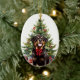 Adorno De Cerámica Rottweiler perro con lazo rojo Navidad