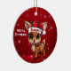 Rudolf! Celebrate the holiday season with this festive round ceramic red ornament featuring an endearing woodland forest animal cartoon graphic of a cute baby reindeer wearing a Santa hat, and Merry Christmas written in white. Perfect deer with antlers for decorating your tree or as a thoughtful gift, this whimsical doe decor makes a cherished keepsake for years to come. Customize by changing the text, the font, the font color, or remove the text. You can even transfer this design onto other products. Enjoy this design your way! Check out ForestBabies Xmas Deer Collection for matching decorations. 🎄🦌