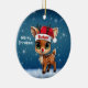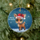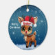Rudolf reindeer, red nose deer with antlers. Celebrate the holiday season with this blue festive round ceramic ornament featuring an endearing icy winter woodland animal forest wildlife. Unique cartoon graphic of a cute doe wearing a Santa hat, and Merry Christmas written in white. Perfect for decorating your Xmas tree or as a thoughtful gift, this whimsical character decor makes a cherished keepsake for years to come. Customize by changing the text, the font, the font color, or remove the text. You can even transfer this baby fawn lover design onto other products. Enjoy this design your way! 🎄🦌