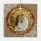 Adorno De Cerámica Rustic Burlap and Lace First Christmas engaged