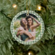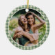 Rústico ornamento de Navidad con un diseño elegante con tu foto favorita sobre un fondo de gingham de estilo vintage junto con el saludo editable "Feliz Navidad" y tu nombre.
