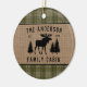 Bonito adorno de cerámica de temática rústica, con su nombre familiar y cabaña, lodge, cabaña u otro texto deseado y su fecha establecida. Este diseño único y a la medida cuenta con una silueta de alce de toro y pinos en una estampada de estilo burpón, acentuada por un hermoso pasto de campo francés en tonos suaves de hierba y verde salvia. Una encantadora adición a su casa de vacaciones, decoración de árboles de navidad navideña. Para ver más diseños como este, siéntase libre de visitar mi tienda aquí en "Zazzle.com/Rustic_Charm". ¡Gracias.