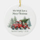 Añada un toque de humor y encanto a sus saludos de vacaciones con este adorno de "Deseamos una Feliz Navidad". Con una escena festiva de ovejas adorables vestidas para las vacaciones, montadas en un camión rojo vintage con un árbol de Navidad a remolque, este adorno es perfecto para todo aquel que ame los juegos de palabras y los diseños únicos. Personalizar con tu apellido y año para crear un toque personalizado que encantará a amigos y familiares. La parte de atrás muestra la misma linda oveja en el camión un poco más grande. El diseño es lúdico y combina elementos rústicos con un espíritu festivo alegre, lo que lo convierte en un adorno ideal para los amantes de las ovejas, los granjeros y cualquiera que disfrute de un buen juego de palabras con animales. Por favor, envíeme un correo electrónico para cualquier pregunta de diseño o edición en pawsnclawspaperie@gmail.com.