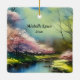 Inspiradora cita de la escritura adornamiento navideño personalizado representa una bella pintura acuarela de la naturaleza con un tranquilo arroyo de agua bordeado de árboles floridos rosas y un cielo azul. Presenta una parte de la adorada y motivadora Biblia Verse 'El Señor es mi Pastor', Salmo 23:2-3, "Él me lleva al lado de las aguas quietas, Él restaura mi alma". Personalizar la parte posterior con un nombre o detalles de su elección._