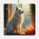 Adorno De Cerámica Samoyed Under the Mistletoe Christmas Painting