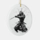 A striking black-and-white illustration of a samurai warrior ready for battle. Inspired by traditional Japanese culture, bushido code, and manga art style. Perfect for fans of samurai, Japan, anime aesthetics, and minimalist ink designs. A unique decorative ornament and a great gift idea.