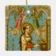 En este detalle de una espléndida huella devocional suiza neogótica, se representa a Santa Cecilia de Roma (siglo III) tocando un órgano recto. Su largo pelo quemado se le cuelga y se tambalea sobre sus hombros y sobre su espalda. Lleva puesto un traje de color crema de estilo medieval alineado en verde sobre un hervidor de naranja rojo oscuro. El vestido tiene un collar cuadrado y mangas de campanas. + A la izquierda, la parte superior de una maceta es visible. En el lenguaje religioso de las flores, los lirios significan pureza. A pesar de su promesa privada de virginidad, Santa Cecilia fue obligada a contraer matrimonio arreglado con un pagano llamado valeriano. El matrimonio nunca se consumó. Lo largo y corto de todo esto es que su nuevo marido, habiendo visto una aparición del ángel que protegía la virtud de su esposa, se convirtió al cristianismo y respetó su promesa. + Contra el fondo acuático adornado con puntos dorados y estrellas, dos ángeles se abalanzan sobre San Cecilia. Ataviado de rosa salmón, un ángel sostiene un pergamino desplegado; vestido de verde, el otro ángel toca un órgano portador o de mano. Se dice que el día de su boda, Santa Cecilia "cantó en su corazón al Señor" en lugar de deleitarse; de ahí su patrocinio de músicos (especialmente organistas) y cantantes representados por los dos ángeles. + Epilog: Santa Cecilia, su marido San Valeriano y su cuñado San Tiburcio fueron todos mártires. Pero, ¡esa es una historia para otro día! + Festín: 22 de noviembre + Crédito de la imagen (BNG 02): Imagen antigua neogótica de San Cecilia, publicada originalmente en cromolitografía por Benziger & Co., Einsiedeln, Suiza, de finales del siglo XIX y principios del siglo XX, de la colección privada de ephemera religiosa del diseñador.