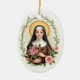 Este elegante adorno oval honra a Saint Thérèse de Lisieux, cariñosamente conocido como "La flor pequeña". El frente presenta un retrato acuático suave enmarcado en suaves flores, perfectamente adaptado para regalar Navidades, espacios de oración o inspiración espiritual durante todo el año. El reverso lado incluye su nombre, título y día de fiesta —1 de octubre— bellamente arreglado dentro de un borde de hoja de coordinación. Un sincero regocijo católico por los que se dedican a su tranquila fe, amor alegre e intercesión celestial.