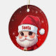Santa! Celebrate the holiday season with this festive round ceramic red ornament featuring an endearing cartoon graphic of a cute baby wearing a Santa hat. Perfect for decorating your tree or as a thoughtful gift, this whimsical decor makes a cherished keepsake for years to come. Customize by changing the text, the font, the font color, or remove the text. You can even transfer this design onto other products. Enjoy this design your way! 🎅🎄