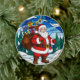 Cute faux stained glass Christmas ornament with santa carrying a sack of gifts. Arty snow, pine trees and sky background. This ornament makes a nice addition to your ornament collection and also makes a great gift. See coordinating items in our shop, Enchanted Finch.