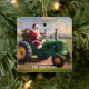 Adorno De Cerámica Santa Conduciendo un Tractor Verde