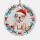 Adorno De Cerámica Santa Hat Bulldog Cuppy Bone Wreath