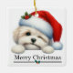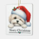 Adorno De Cerámica Santa Hat Winking Havanese Puppy Christmas