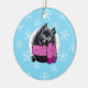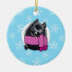 El tema del invierno, con copos de nieve y la bufanda tibia de los puntos de polka, complementa este original dibujo de un Schipperke. Una idea de regalo. Haga clic en el naranja "¡personalizar!" para añadir texto a la parte posterior, como un nombre de mascota, para crear un regalo verdaderamente único.