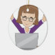 Una mujer de negocios es feliz sobre algo hacer con su ordenador portátil.
