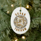Crafted from high-quality white ceramic with a smooth, glossy finish, the design is printed in vivid detail to capture the texture of the woven ball. Each ornament comes with a gold-toned string, making it ready to hang and enjoy immediately.