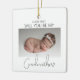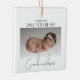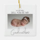 Pide a tu mejor amiga, hermana o prima que sea la madrina de tu bebé con este hermoso adorno de árbol de Navidad minimalista con foto en 2 lados, con una foto adorable de tu bebé, haciendo la pregunta y en el otro lado otra foto con un mensaje de plantilla, los estilos de fuente y el color de fondo se pueden cambiar haciendo clic en el enlace personalizar más después de personalizar.