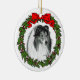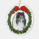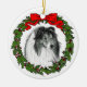Dibujo de un hermoso perro Sheltie en un adorno navideño de Glenda S. Harlan.