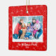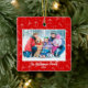 Este adorno incluye una foto reemplazable con un nombre y un año personalizables por un lado, y un blanco en la "Feliz Navidad" roja por el otro lado. Ambos lados presentan un icono de Navidades rojos y blancos con un fondo adornado con estrellas, copos de nieve, caramelos, medias de Navidades y regalos. Haz tus actualizaciones directamente en la página del producto para hacer de este ornamento tu propio!