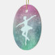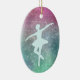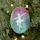 Aquí hay un elegante adorno navideño que cuenta con una bailarina de silueta color agua plateada. La imagen se coloca sobre un fondo brillante de varios colores que incluye rosa, verde azulado y verde. Pequeñas estrellas plateadas hacen que el fondo brille. La parte posterior del adorno tiene el mismo fondo, pero con dos campos de texto para que el personalizar. ¡A cualquier bailarín le encantaría este adorno! *Si desea una forma diferente y necesita cambiar la posición de la figura o del texto, utilice el Personalizar y arrastre la imagen hasta donde desee que esté.