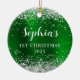 Adorno De Cerámica Silver Glitter Green Faux Foil 1st Christmas Photo
