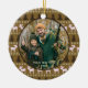 Diseñe su propio toque de honor o regalo con dos fotos en este adorno de cerámica de doble cara con un diseño rústico y de madera con árboles de color verde perenne y siluetas de alce en tonos dorados y marrones oscuros, con un lugar para añadir su texto personalizado en la parte delantera. Aunque el diseño es lo suficientemente genérico con un acogedor diseño invernal para acentuar cualquier foto de un árbol de vacaciones, es aún más apropiado para fotos temáticas al aire libre como caza, acampada, pesca, caminatas, etc. En la parte trasera hay una foto de sangre completa. (PUNTO DE FOTO: Para obtener resultados más rápidos/mejores, elija una foto con el sujeto en el medio y/o pre-recortar su imagen a una forma cuadrada ANTES de subirla y rellenará el espacio de fotos proporcionado perfectamente.) El estilo, tamaño y color del tipo de letra del texto se pueden cambiar haciendo clic en la ficha "Haga clic para más personalizares". OTROS ESTILOS: Tenga en cuenta que otros estilos de ornamento de los que elegir en la página de pedidos pueden no ofrecer impresión en segundo plano. Póngase en contacto con el diseñador si desea este diseño en otro elemento.