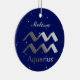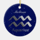 Ornamento en el símbolo zodiaco para Aquarius en un gradiente plateado sobre fondo estelar, con campo de nombre editable