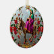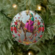 Este adorable adorno de cerámica está decorado con uno de mis diseños originales de IA generados por computadora usando el programa NightCafe. El diseño es de María en el burro con flores de oro y de poinsettia roja. Se vería adorable colgando de un árbol de Navidad.
