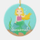 Añada un tacto de la fantasía y del cuento de hadas a su pequeño su mundo con esta sirena linda del océano. La sirena se está sentando sin prisa en una roca que agita a usted. Su pelo rubio se está sacudiendo con las corrientes del agua y ella tiene una estrella de mar fijada a su pelo como accesorio. Un diseño colorido y atractivo para los chicas que aman fantasía, místico, cuento de hadas, debajo del mar, temas subacuáticos. Personalice fácilmente con el nombre del niño para darle un regalo único.