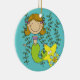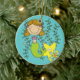 Una sirena sonriente de pelo marrón y una estrella de mar amarilla nadan entre las algas, un diseño que es lindo y colorido para los chicas que aman el océano y las sirenas. Camisetas de sirena, pantalones de vestir, biberones, mantas, mantas, barbas, tarjetas, pegatinas, bolsas, tazas, llaveros, almohadas, relojes de pared y muchos otros aparejos de sirena.
