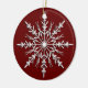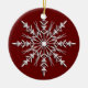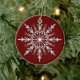 El festivo Snowflake on Red Dated Round Ornament hace un regalo único para la anfitriona, un obsequio de medias o un regalo de Navidad. Este elegante ornamento personalizado anticuado presenta un intrincado diseño de copos de nieve con un fondo rojo.