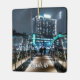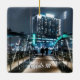 Holiday season in Buffalo, NY as the snowy night is filled with dazzling lights at Canalside.