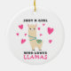 La Llama Adorable decorada con borlos y sillones tradicionales. El texto dice: "Sólo un Chica que ama las Llamas".